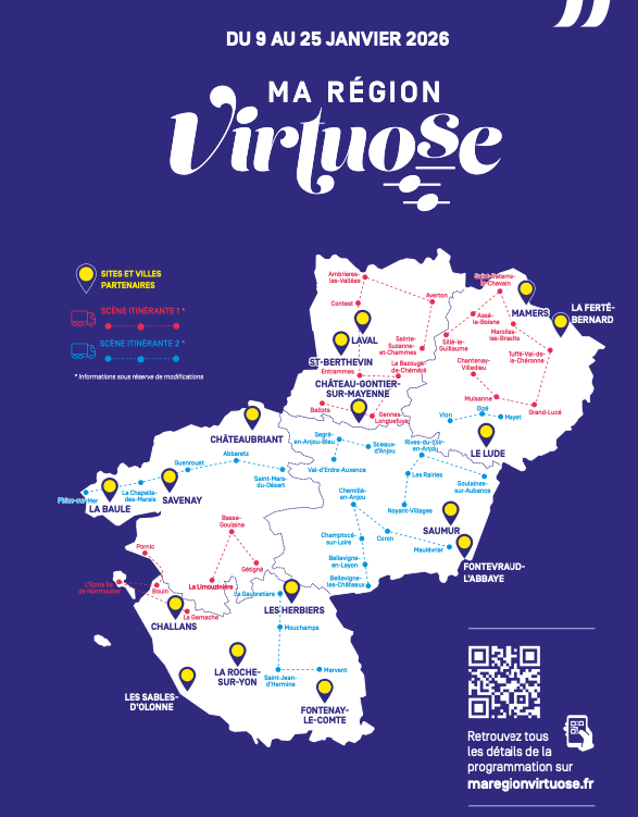 Partout en Pays de la Loire, la programmation entend mettre en lumière ce que les grands musiciens ont composé de plus beau, de l’époque baroque à nos jours. Elle s’annonce à la fois populaire et exigeante, fédératrice et nomade. 170 concerts sont programmés dans 80 communes, lycées, marchés, centres commerciaux, lieux socio-solidaires en Pays de la Loire.